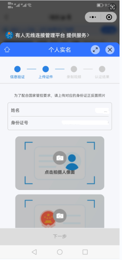 (2)按照步驟輸入個人信息及上傳身份證件,完成實(shí)名認(rèn)證。