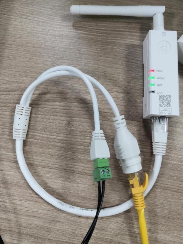 USR-DR185網(wǎng)口接標(biāo)配接口配件,配件的網(wǎng)口網(wǎng)線接終端電腦(或者網(wǎng)絡(luò)終端設(shè)備),端子接12V電源適配器正極和負(fù)極(注意有人公司電源適配器帶一段一段白色色環(huán)的是正極)上電。