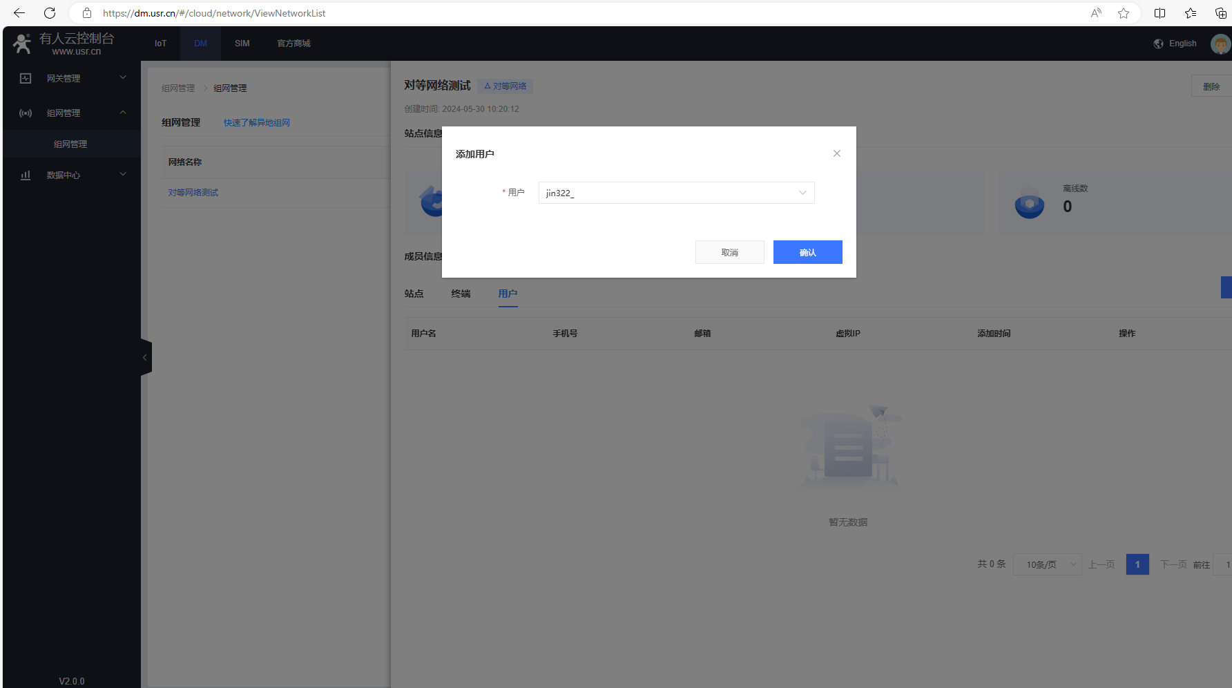 (1)點(diǎn)擊用戶,點(diǎn)擊添加用戶,選擇有人云主用戶,點(diǎn)擊確認(rèn)。