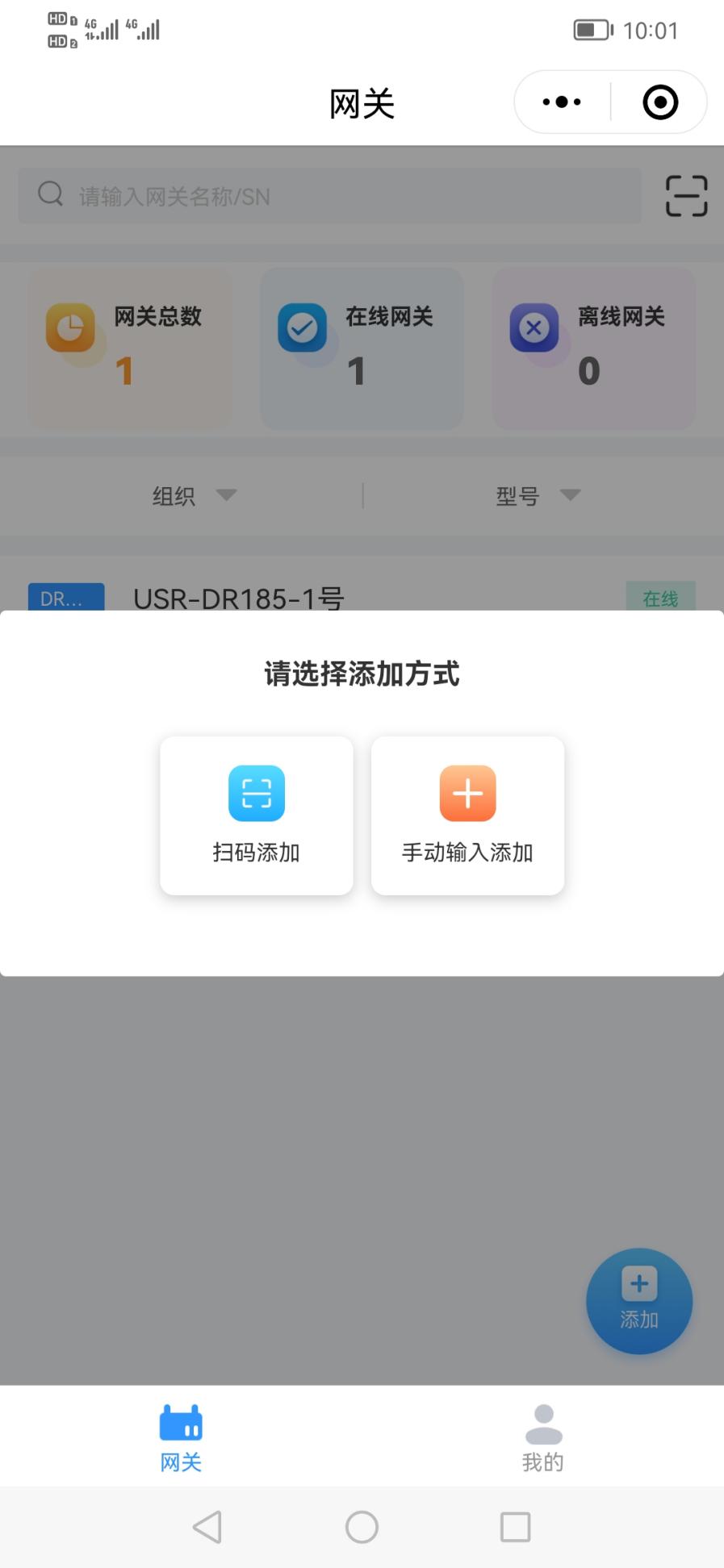 2、掃碼添加第一臺(tái)USR-DR185網(wǎng)關(guān)
