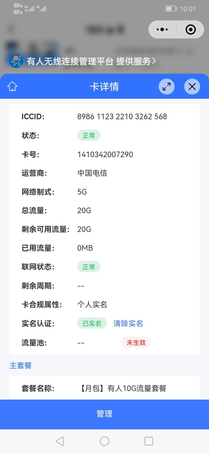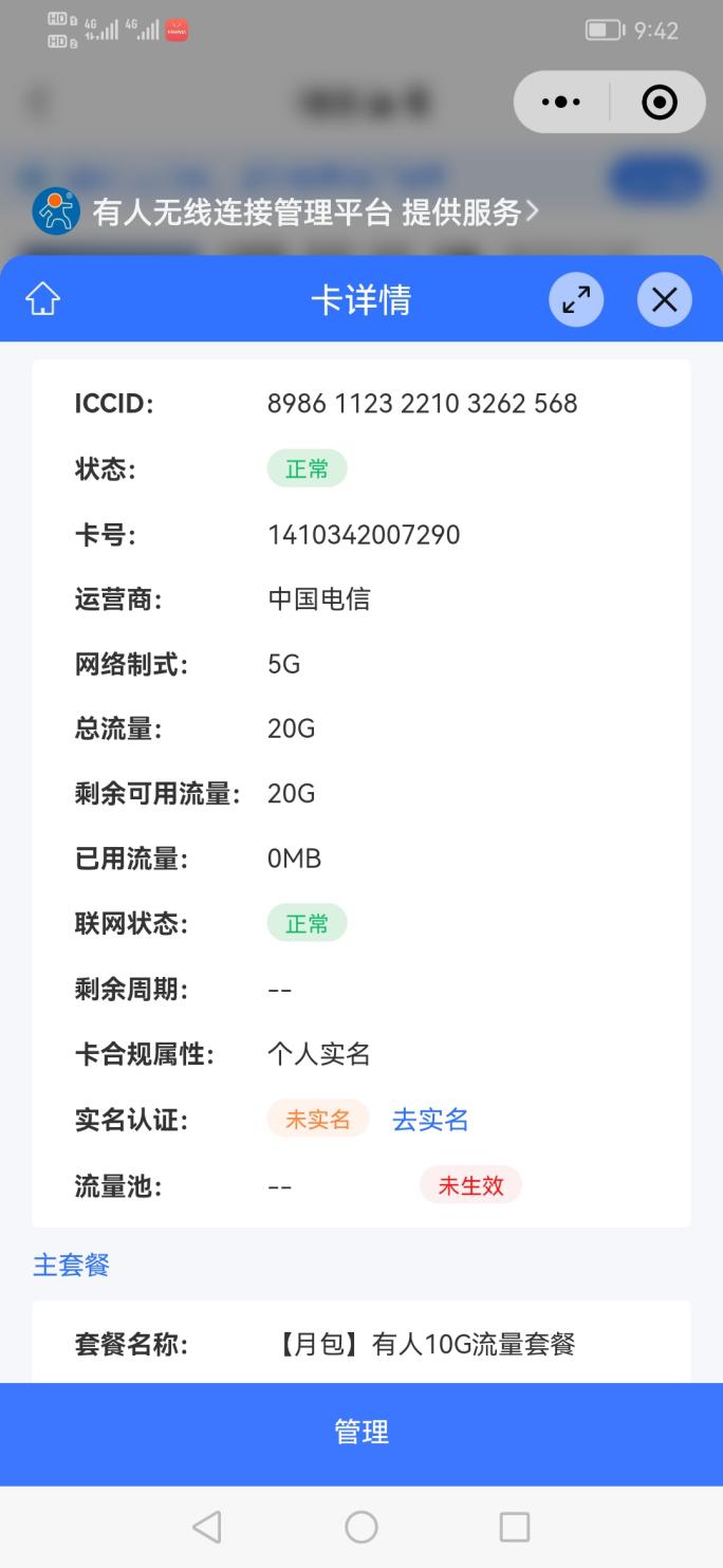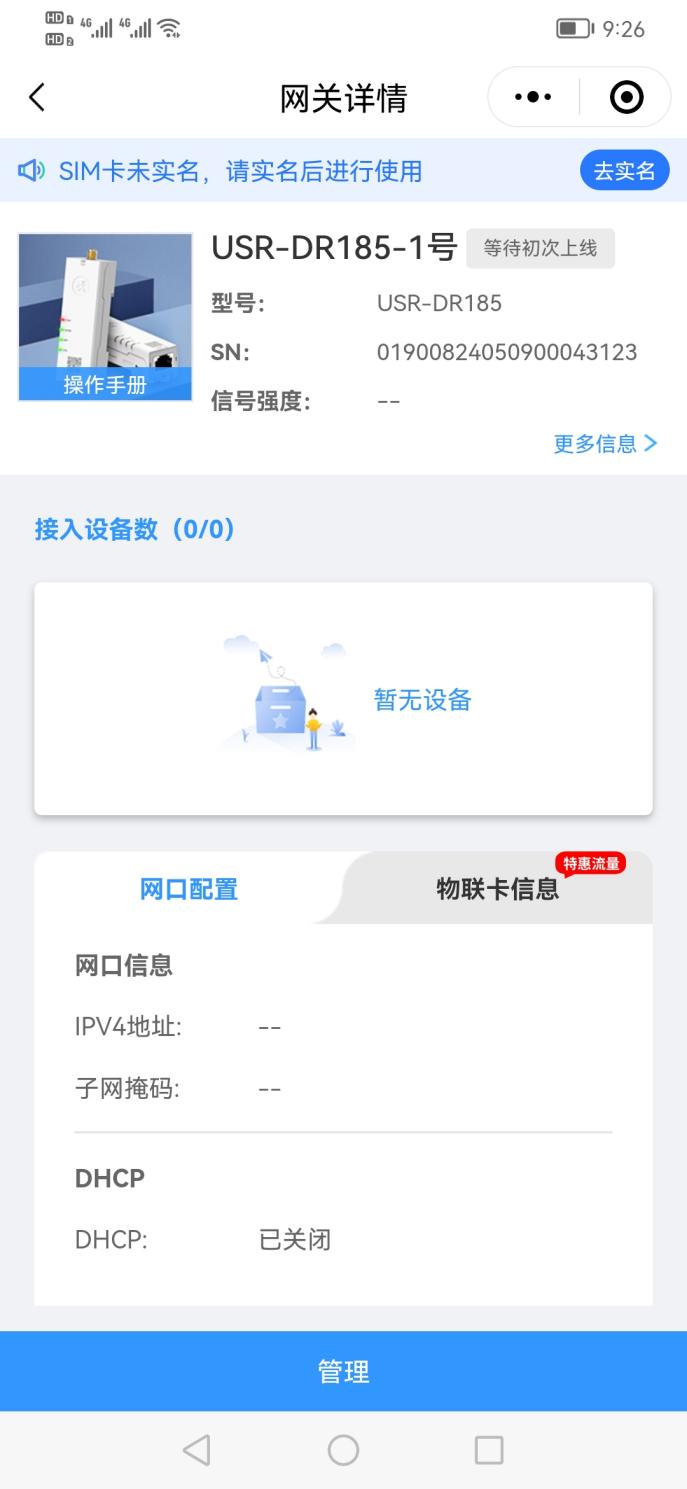 (3)實(shí)名認(rèn)證后,第一臺(tái)USR-DR185在線,卡詳情顯示實(shí)名認(rèn)證已實(shí)名。