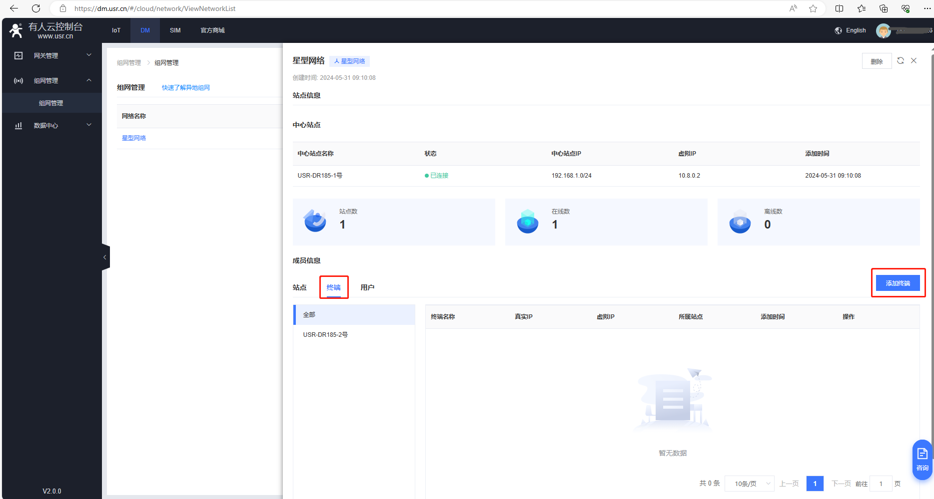 (1)星型網(wǎng)絡(luò)頁(yè)面,點(diǎn)擊終端,點(diǎn)擊添加終端。