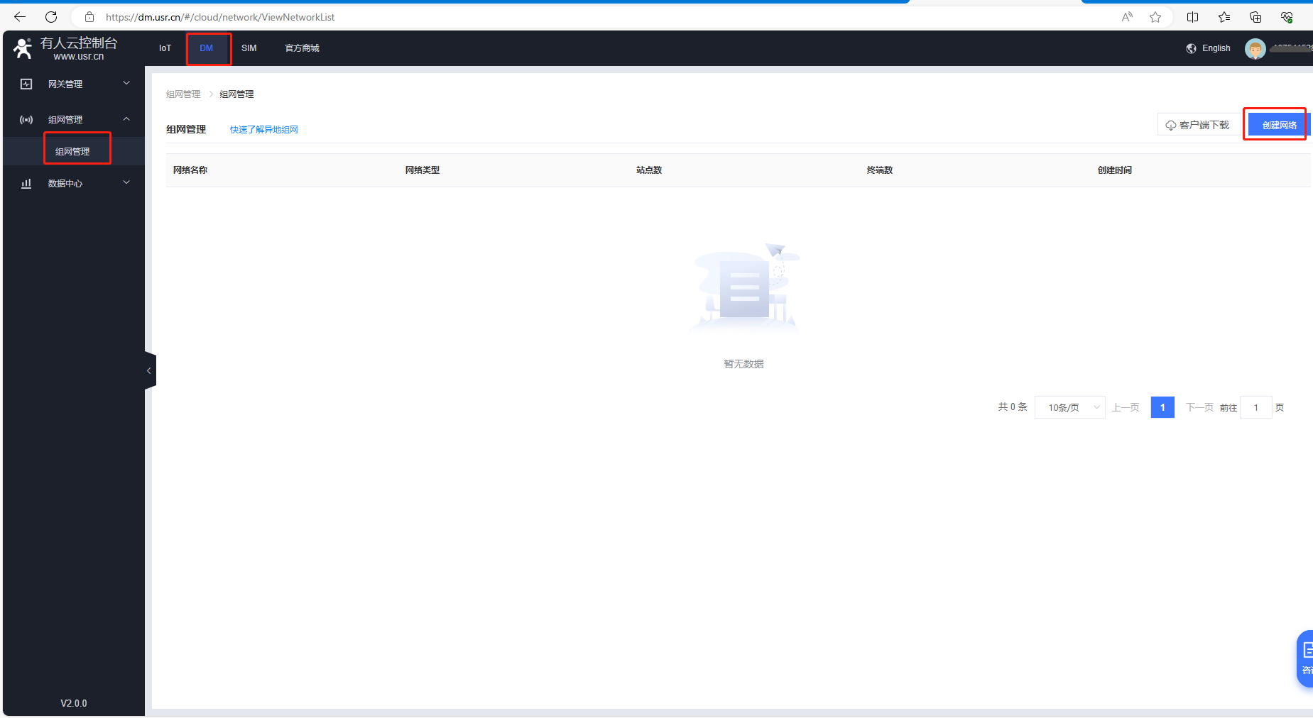 (2)找到DM平臺(tái),點(diǎn)擊組網(wǎng)管理,點(diǎn)擊創(chuàng)建網(wǎng)絡(luò)。