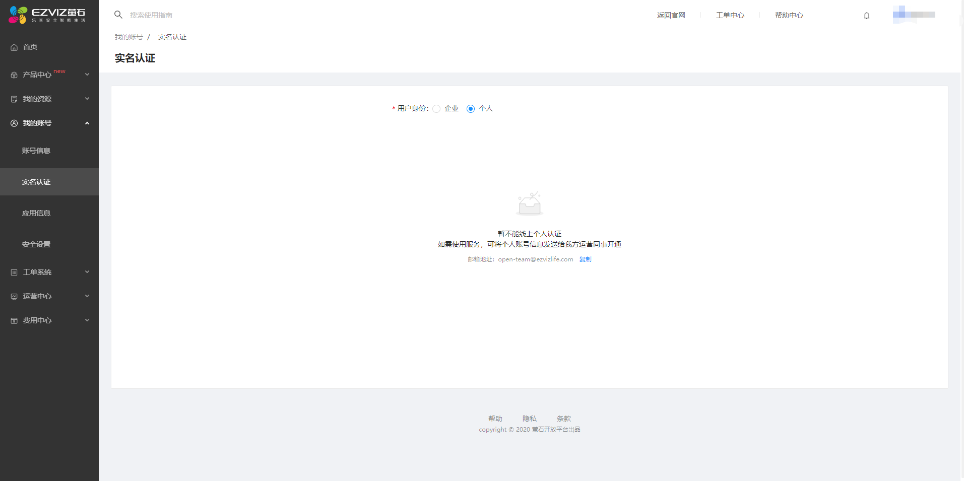 1、在瀏覽器打開螢石云的網(wǎng)址:https://open.ys7.com/mobile/download.html如果沒有螢石云賬號請注冊2、點(diǎn)擊創(chuàng)建應(yīng)用按鈕,需要進(jìn)行實(shí)名認(rèn)證公司認(rèn)證和個(gè)人認(rèn)證二選一即可。