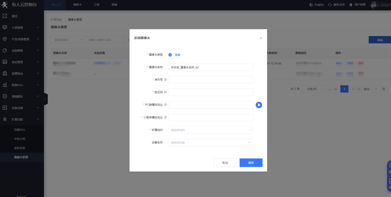 有人云網(wǎng)址:https://mp.usr.cn/#/cloudV2/extend/ViewCameraList
