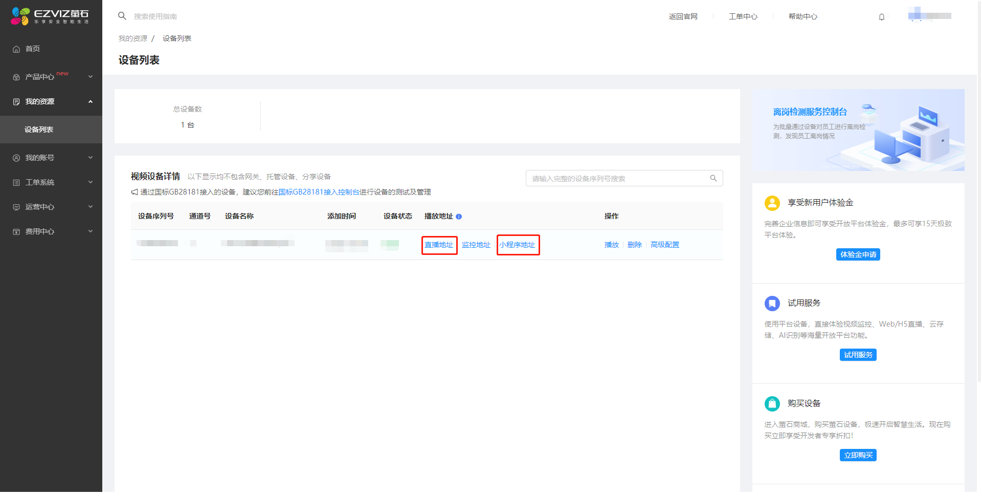 4、在我的資源---設(shè)備列表,添加海康攝像頭
