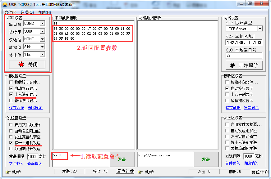 2.通過串口助手讀寫配置指令