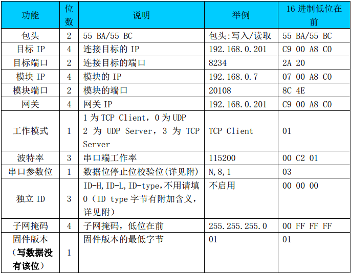 讀串口配置指令:55 BC讀模塊配置