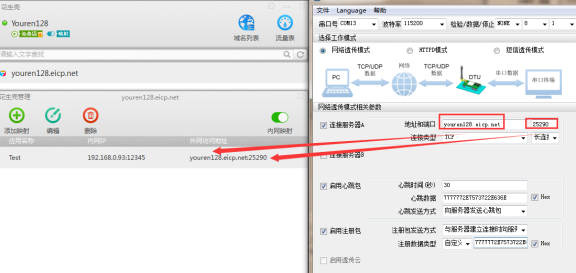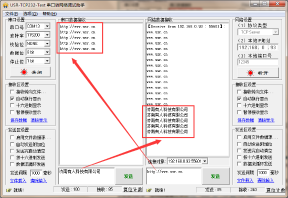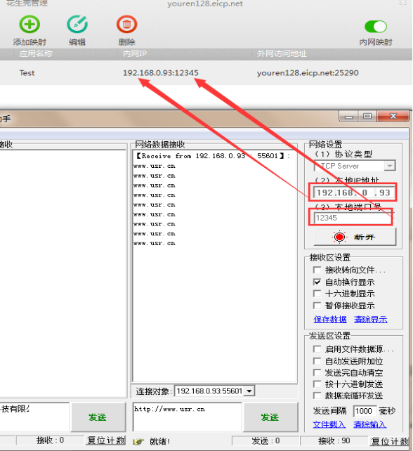 8.使用有人Test調(diào)試助手軟件測試GPRS DTU串口到網(wǎng)絡(luò)數(shù)據(jù)收發(fā)情況。