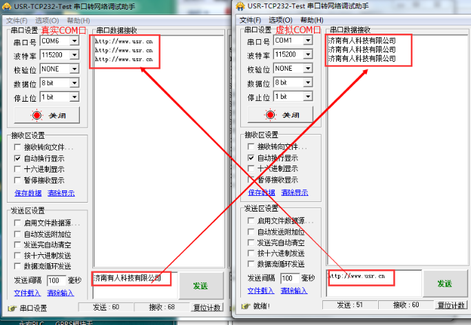 10.使用Test調(diào)試助手軟件測試GM3串口到虛擬COM口數(shù)據(jù)收發(fā)情況。