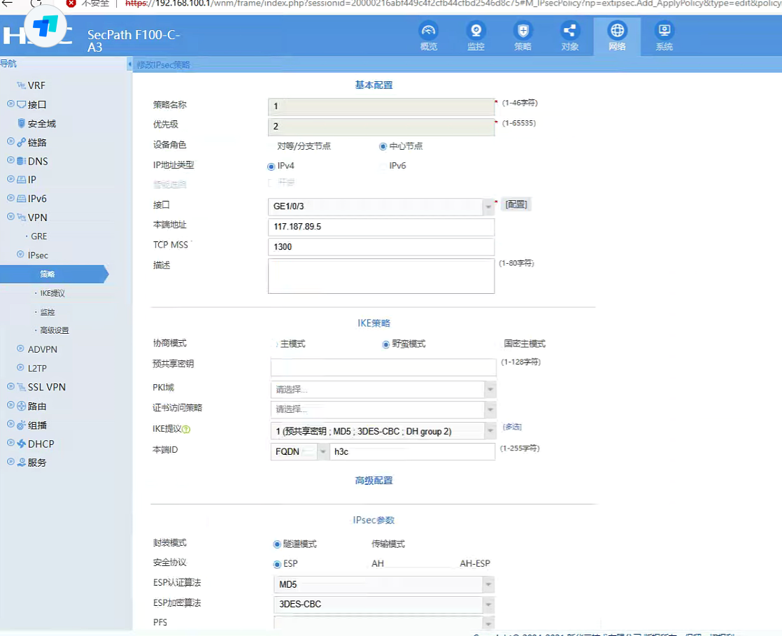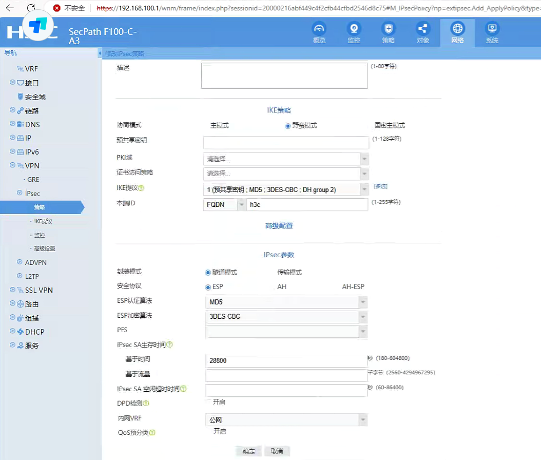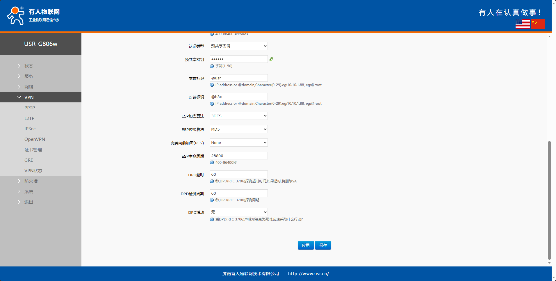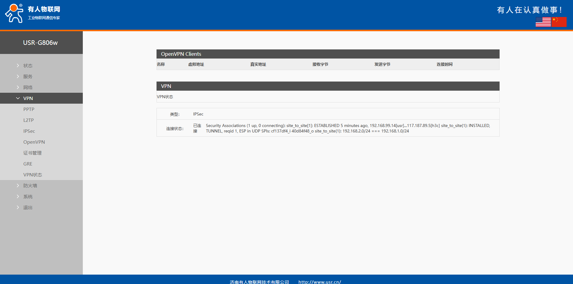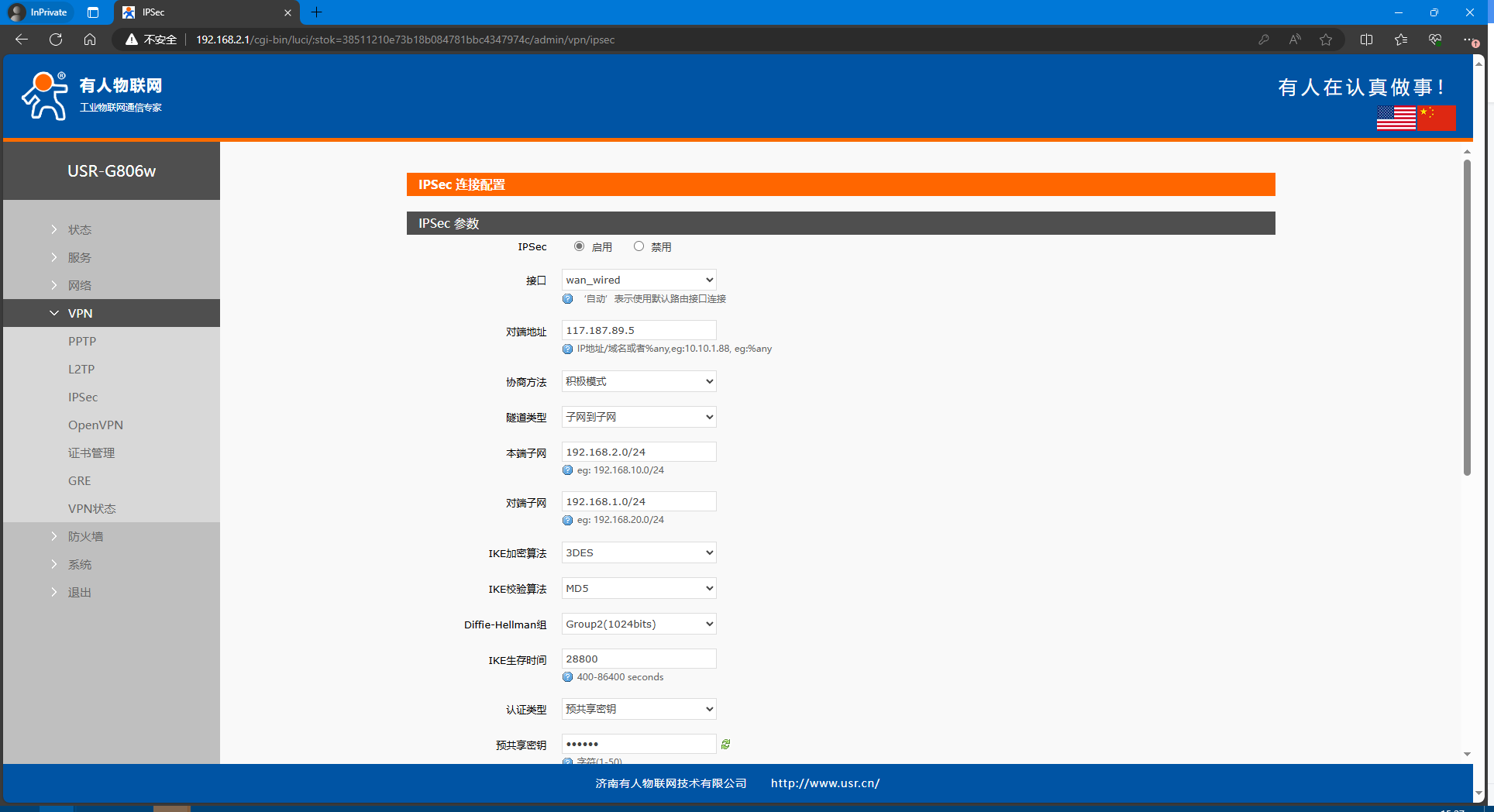 USR-G806w通過IPSEC連接H3C服務(wù)器示例