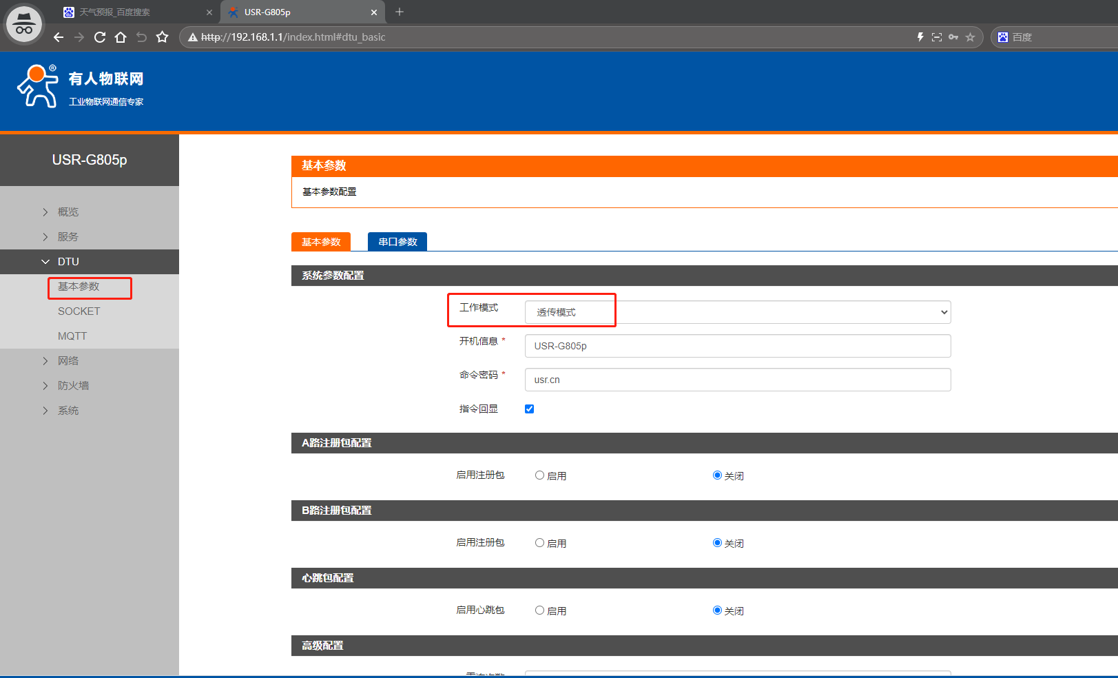 三、USR-G805p網(wǎng)頁(yè)參數(shù)設(shè)置