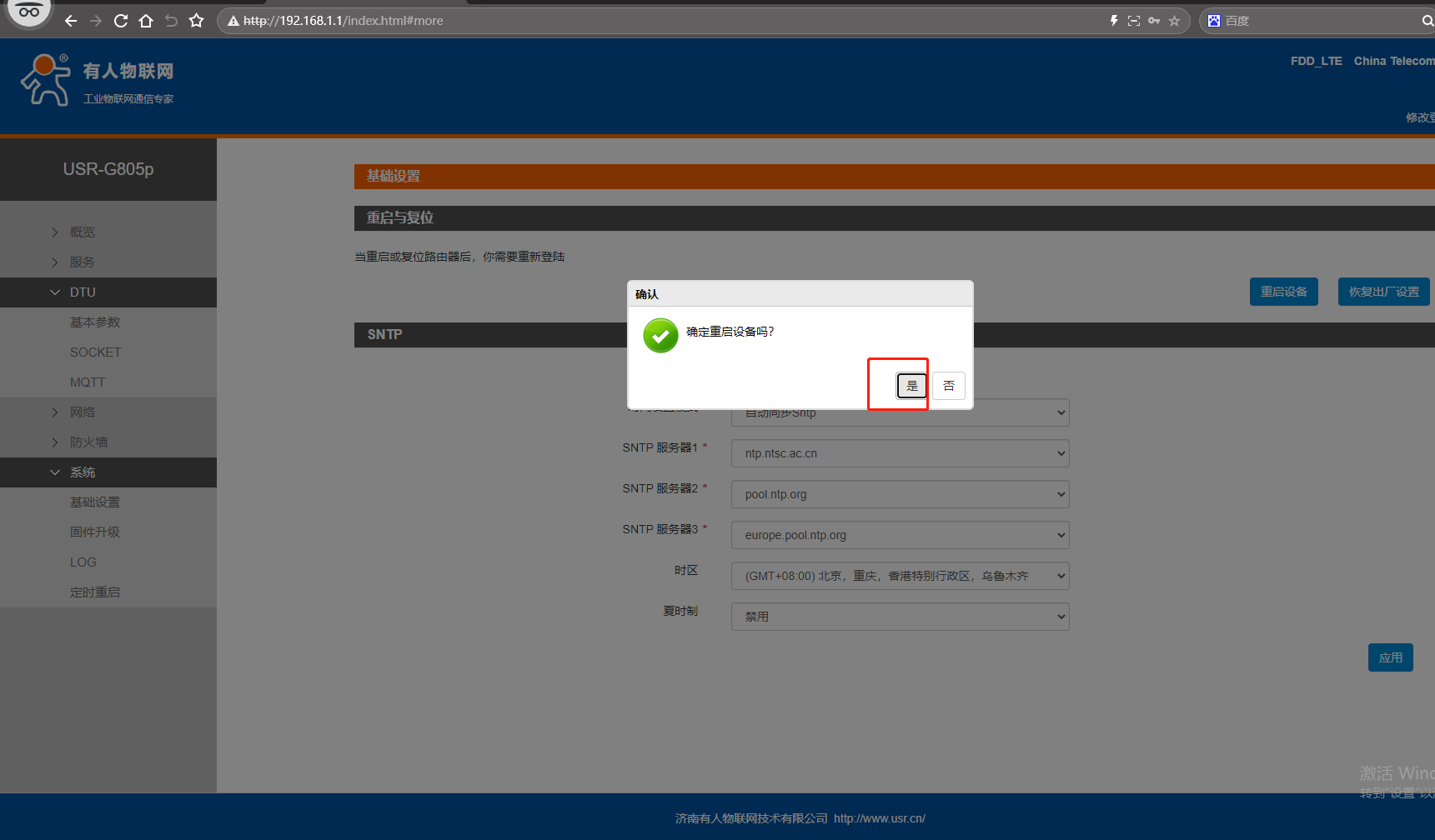 網(wǎng)頁(yè)點(diǎn)擊系統(tǒng),點(diǎn)擊基礎(chǔ)設(shè)置,點(diǎn)擊重啟設(shè)備。
