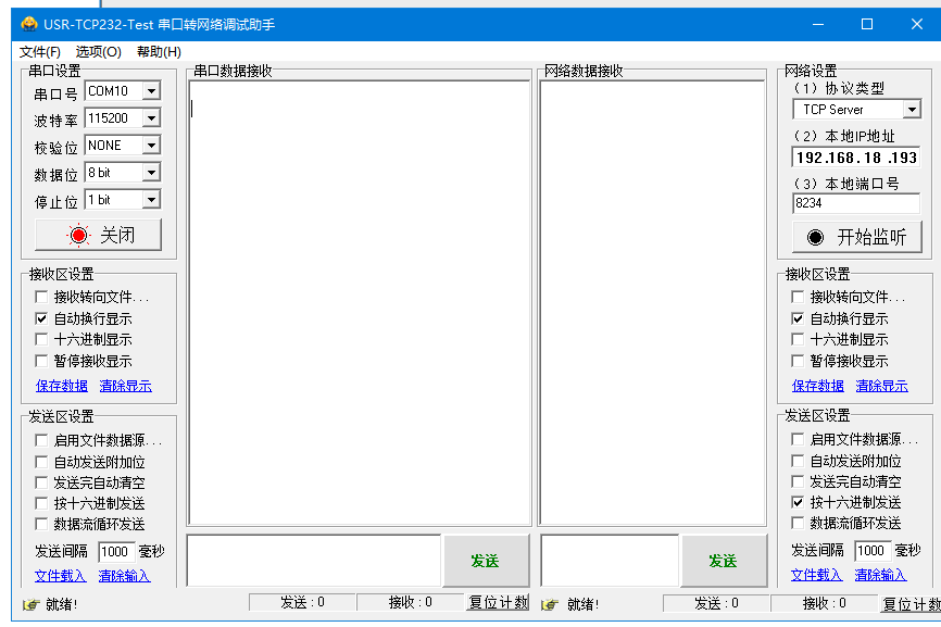 1、電腦安裝打開一個(gè)串口助手,串口參數(shù)設(shè)置和USR-G805p串口參數(shù)一致。