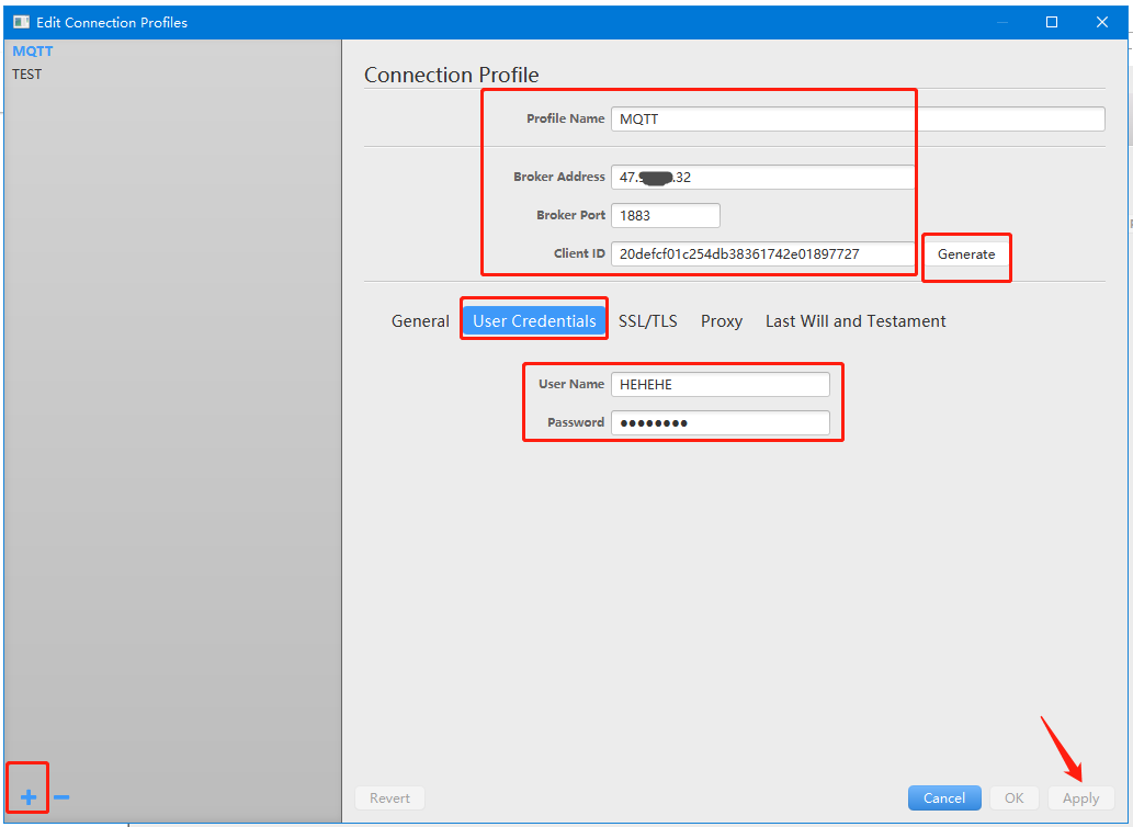 用戶名和密碼填MQTT服務(wù)器的用戶名和密碼。