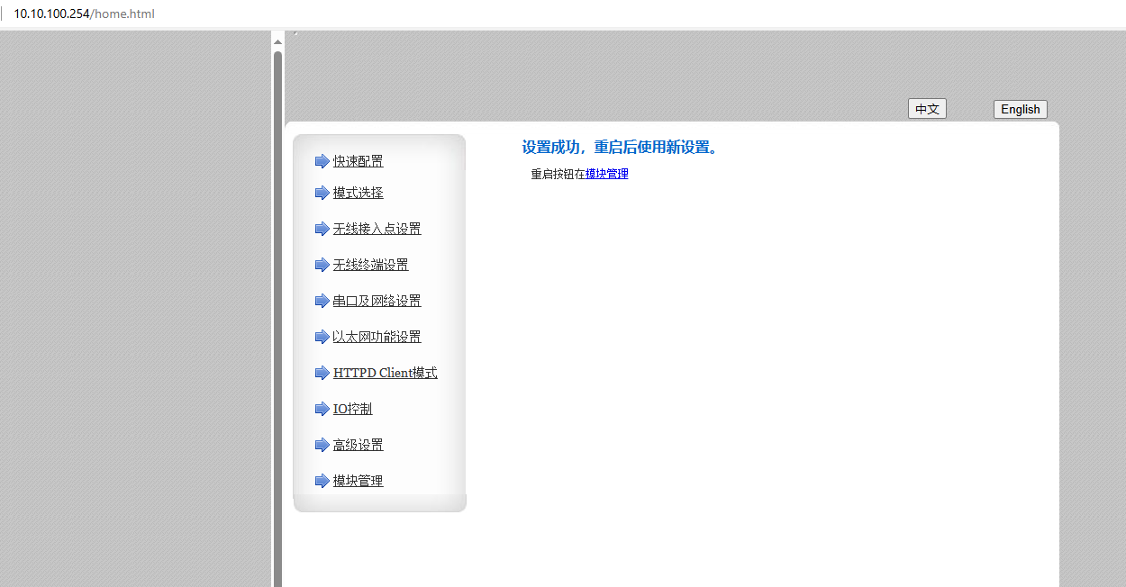 1、電腦連接USR-WIFI232-B2的WiFi,瀏覽器輸入10.10.100.254登陸網(wǎng)頁(yè)