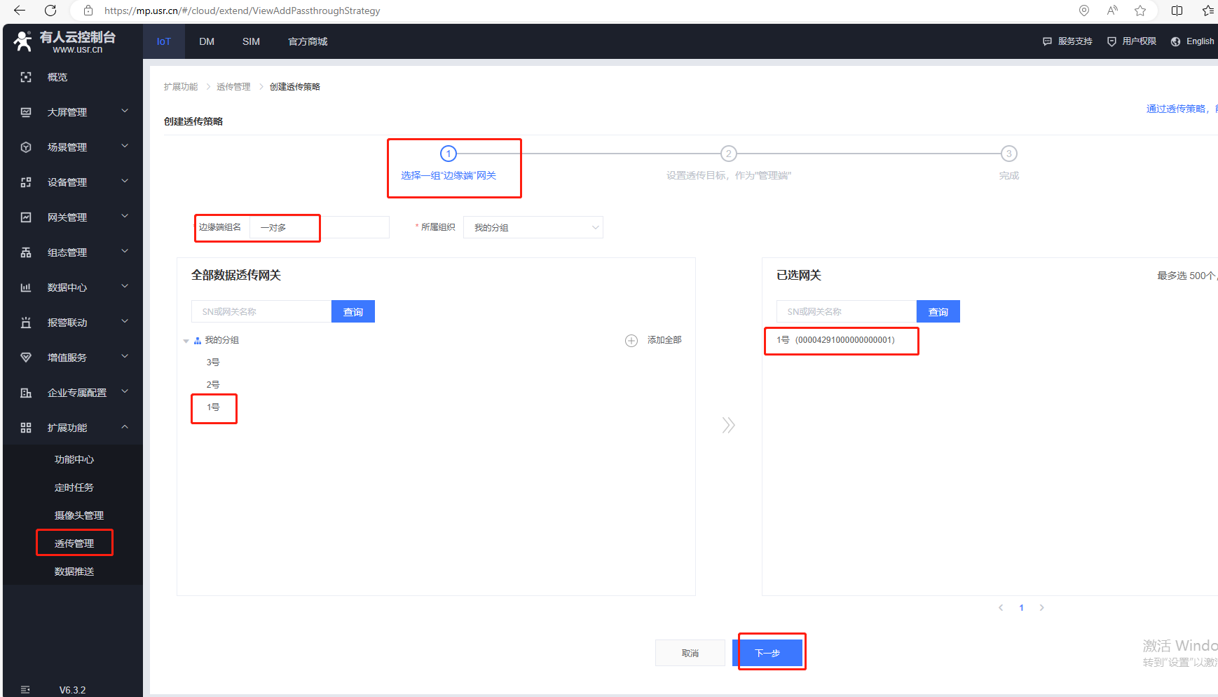 2、選擇邊緣端網(wǎng)關(guān),添加的USR產(chǎn)品1號(hào)設(shè)備