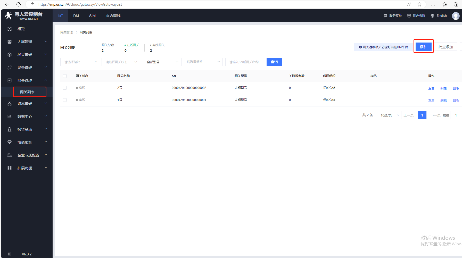 1、點(diǎn)擊網(wǎng)關(guān)管理,網(wǎng)關(guān)列表,點(diǎn)擊添加,點(diǎn)擊添加。