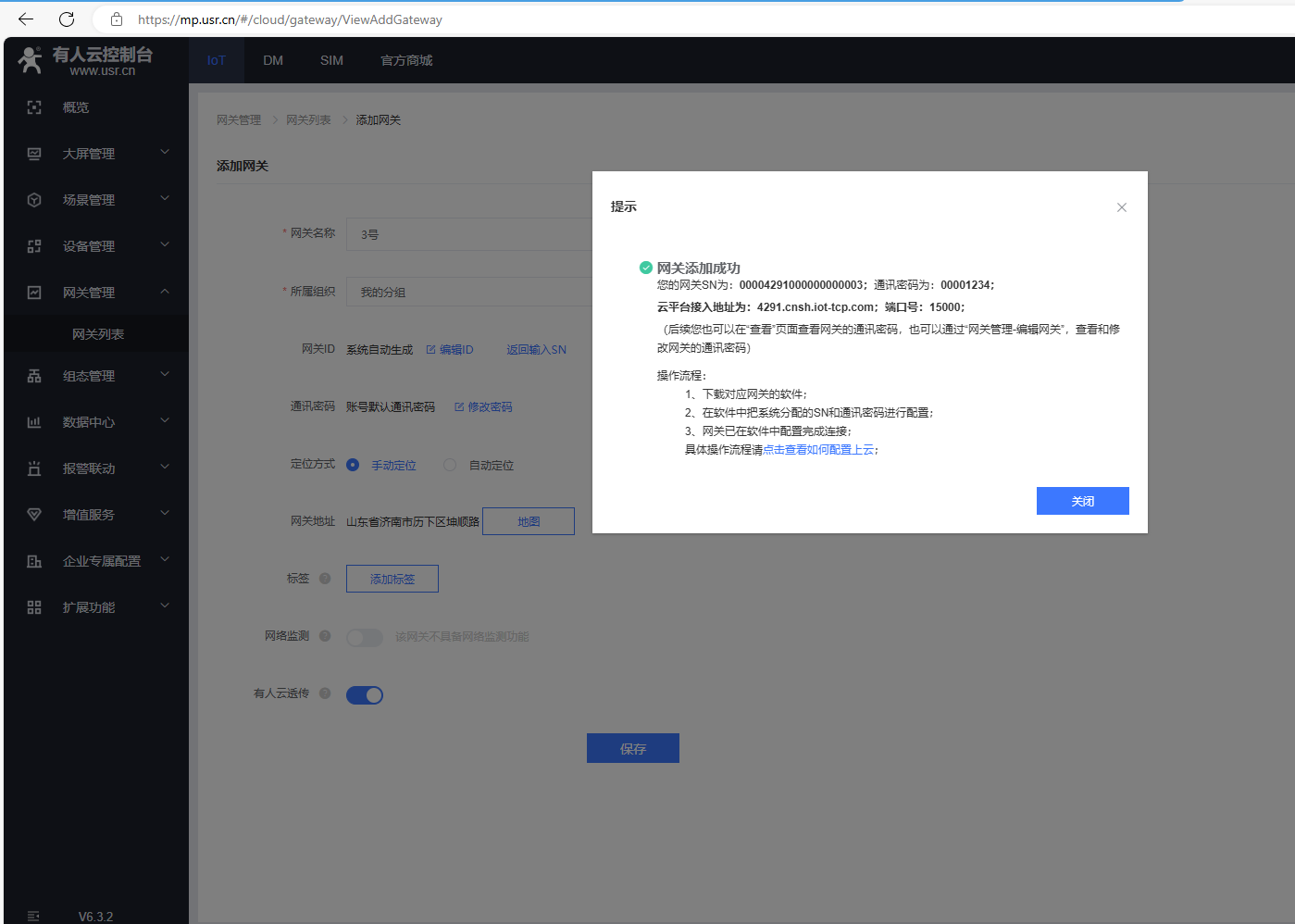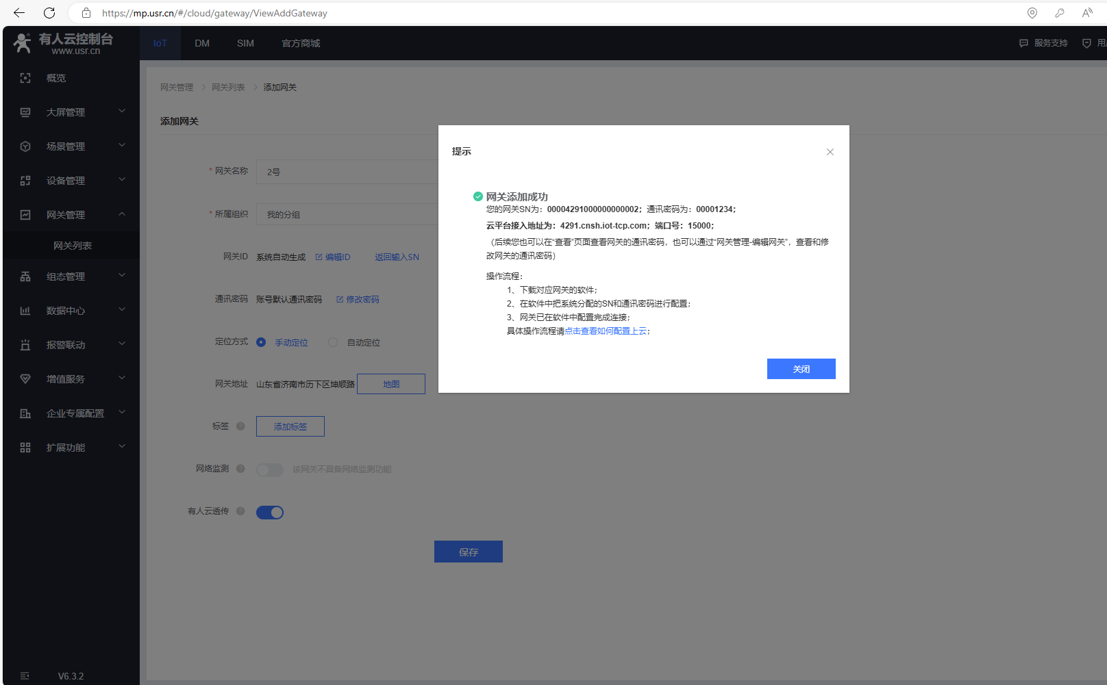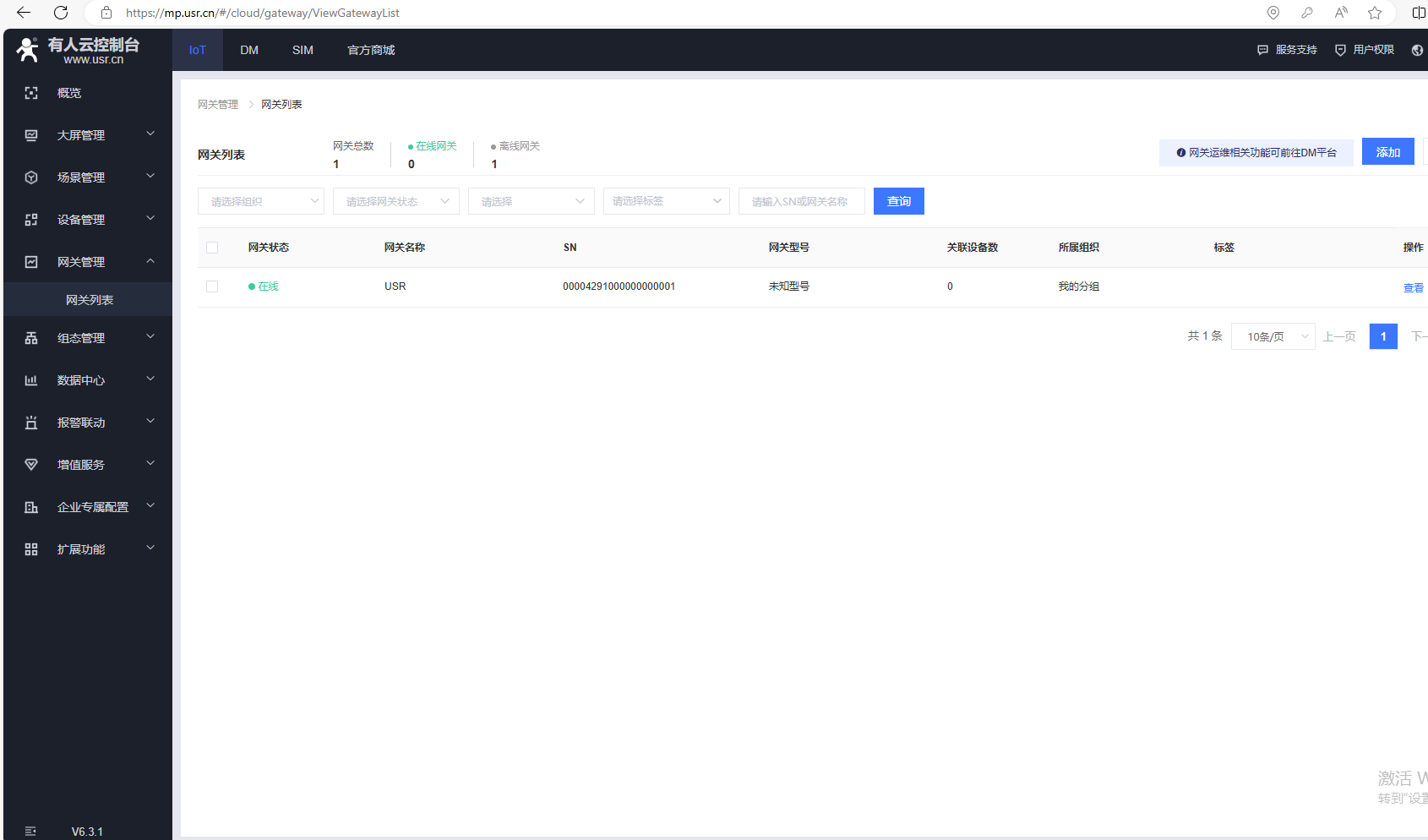 添加完,有人云,網(wǎng)關(guān)列表,USR-VCOM在線(xiàn)。