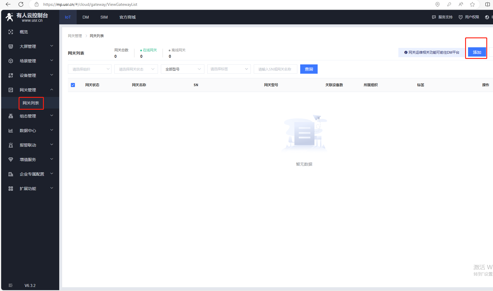 (1)點(diǎn)擊網(wǎng)關(guān)管理,網(wǎng)關(guān)列表,點(diǎn)擊添加,點(diǎn)擊添加。
