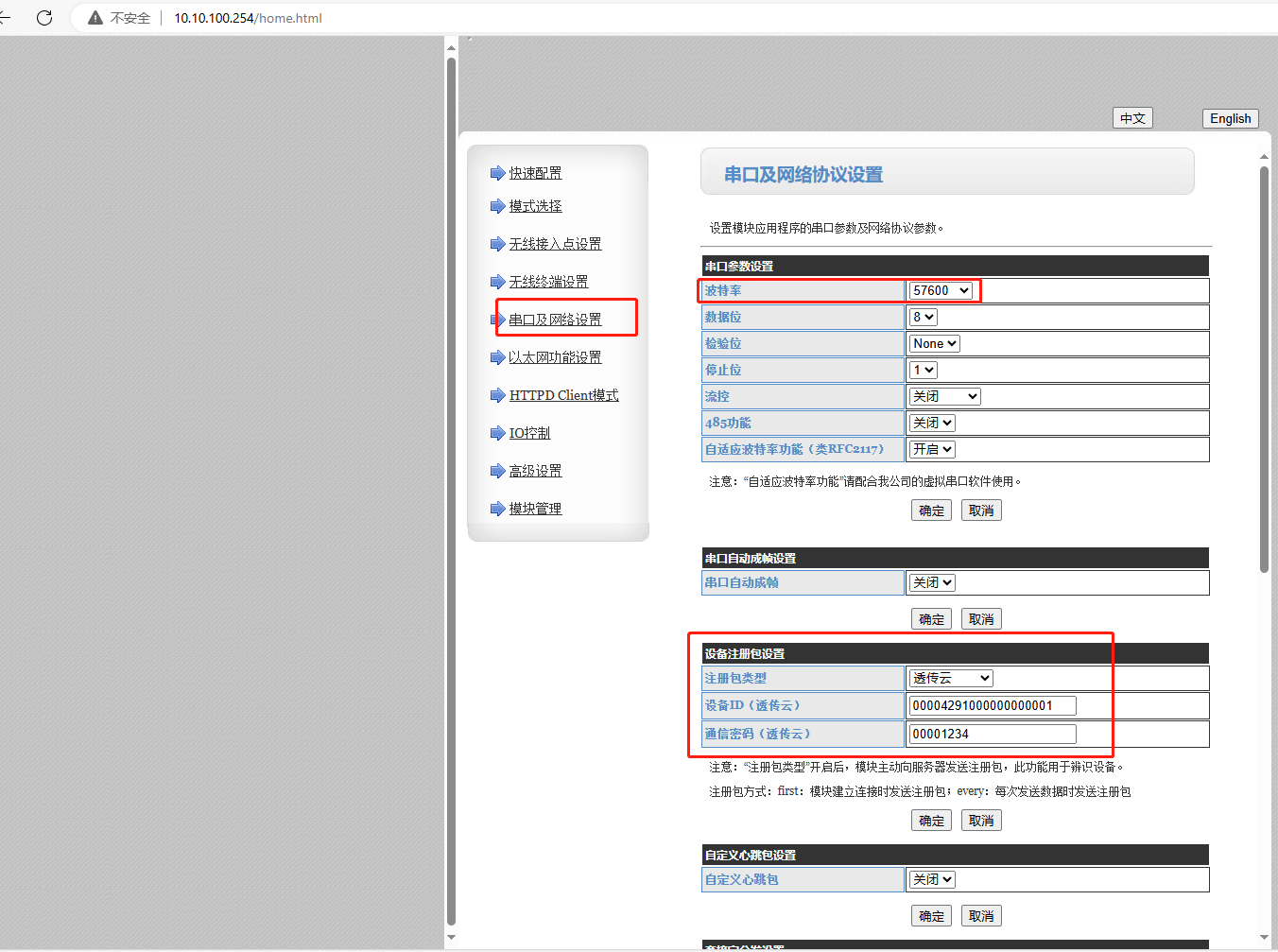 (1)電腦連接USR-WIFI232-B2的WiFi,瀏覽器輸入10.10.100.254登陸網(wǎng)頁