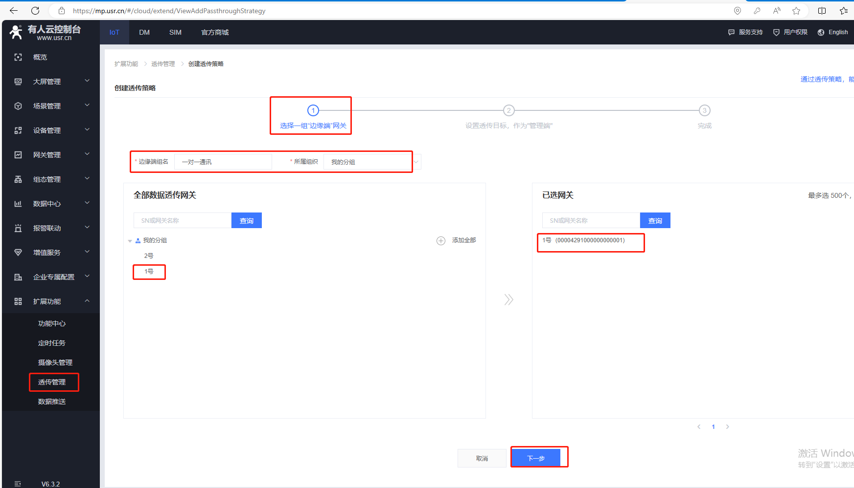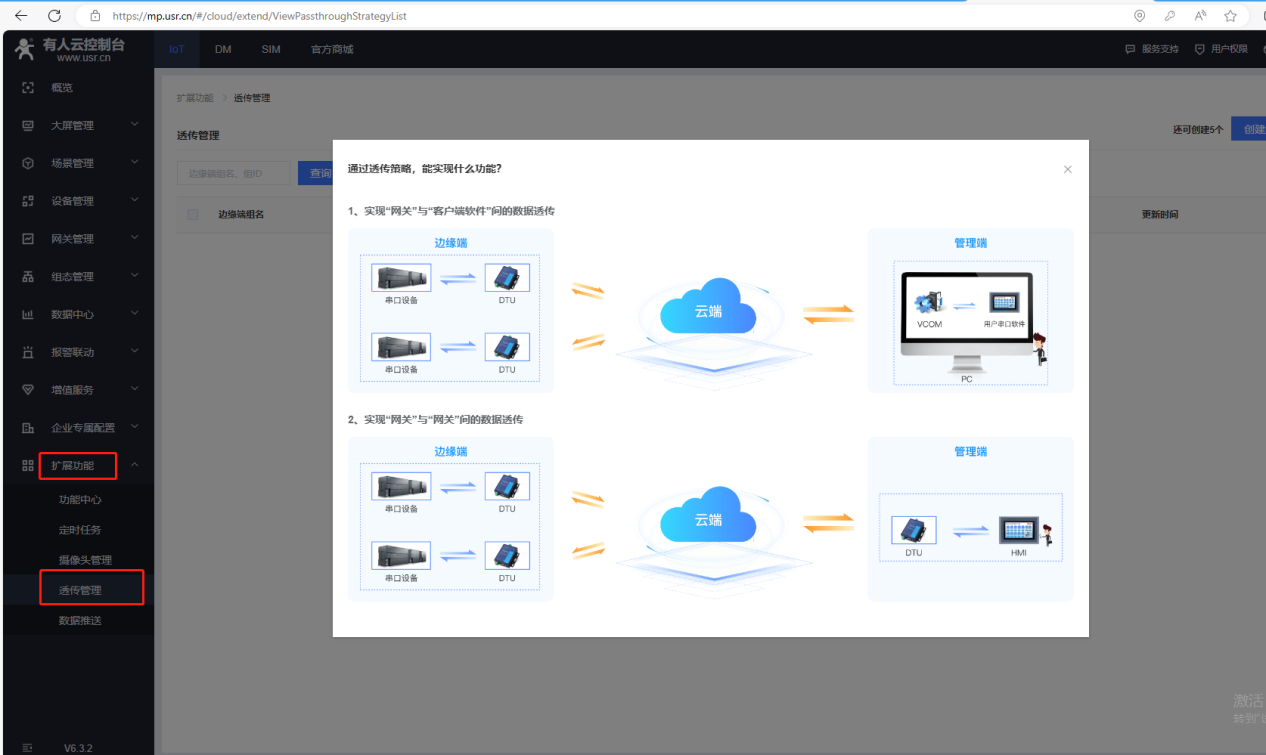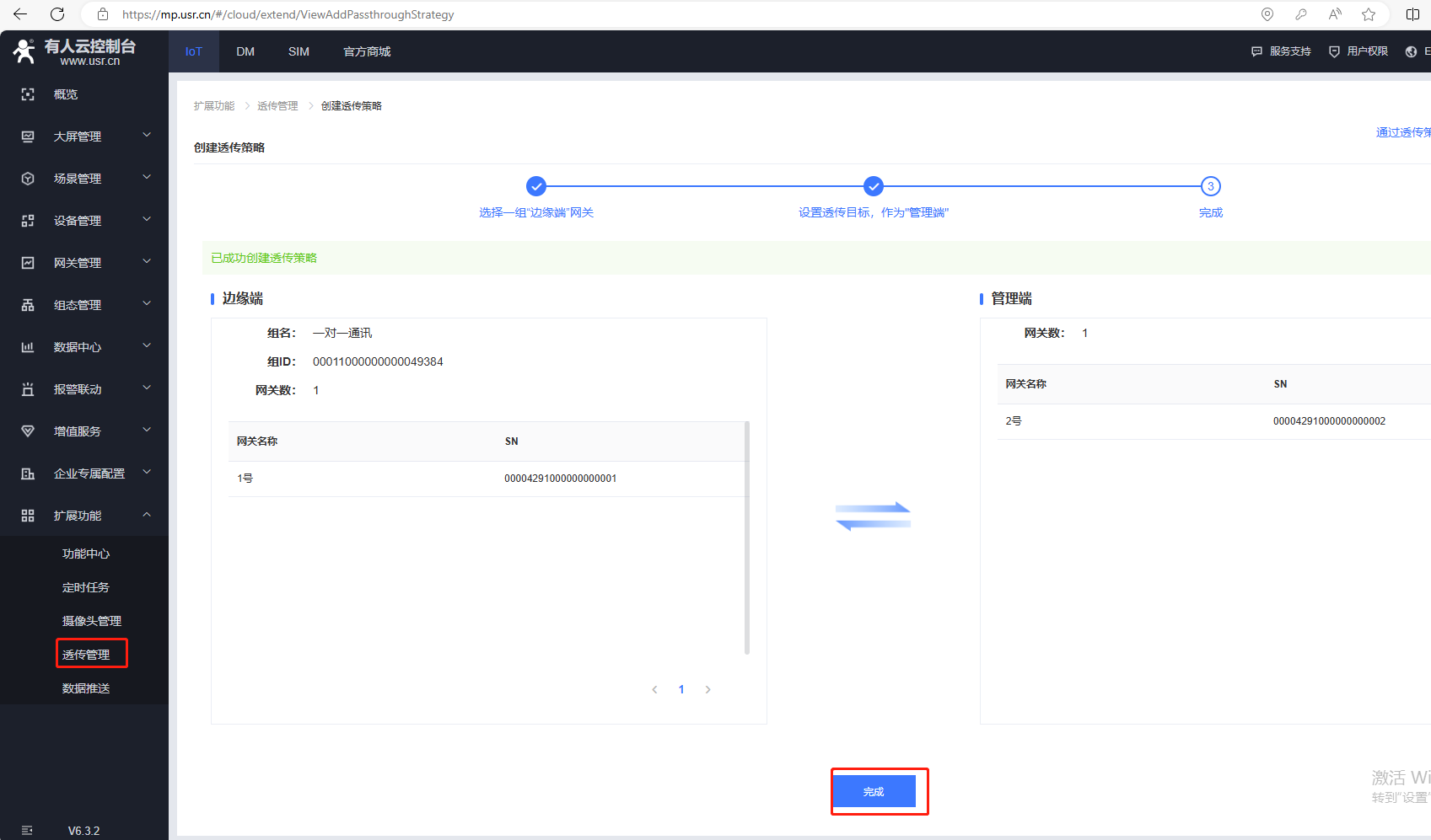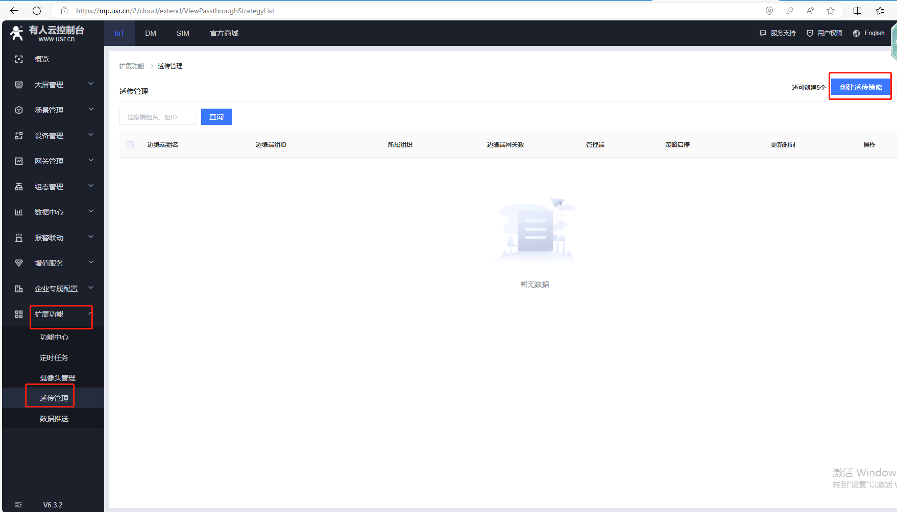 1、擴(kuò)展功能,透傳管理,創(chuàng)建一個透傳策略