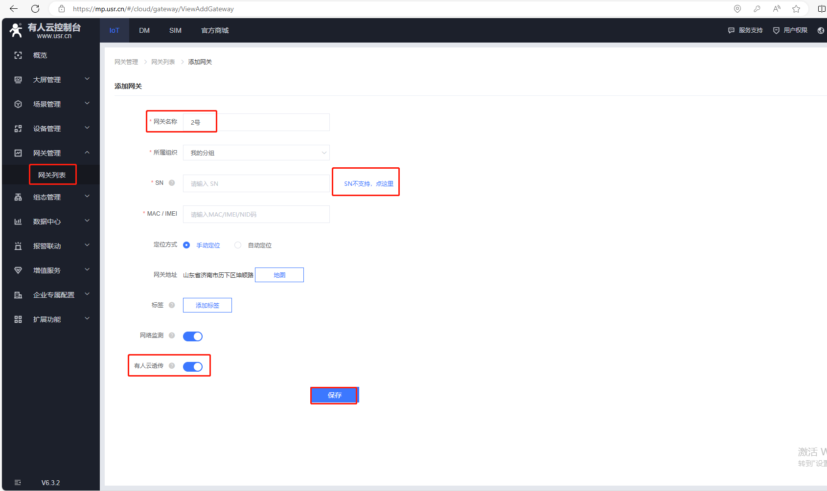 2、選擇邊緣端網(wǎng)關(guān),添加的1號USR-WIFI232-B2