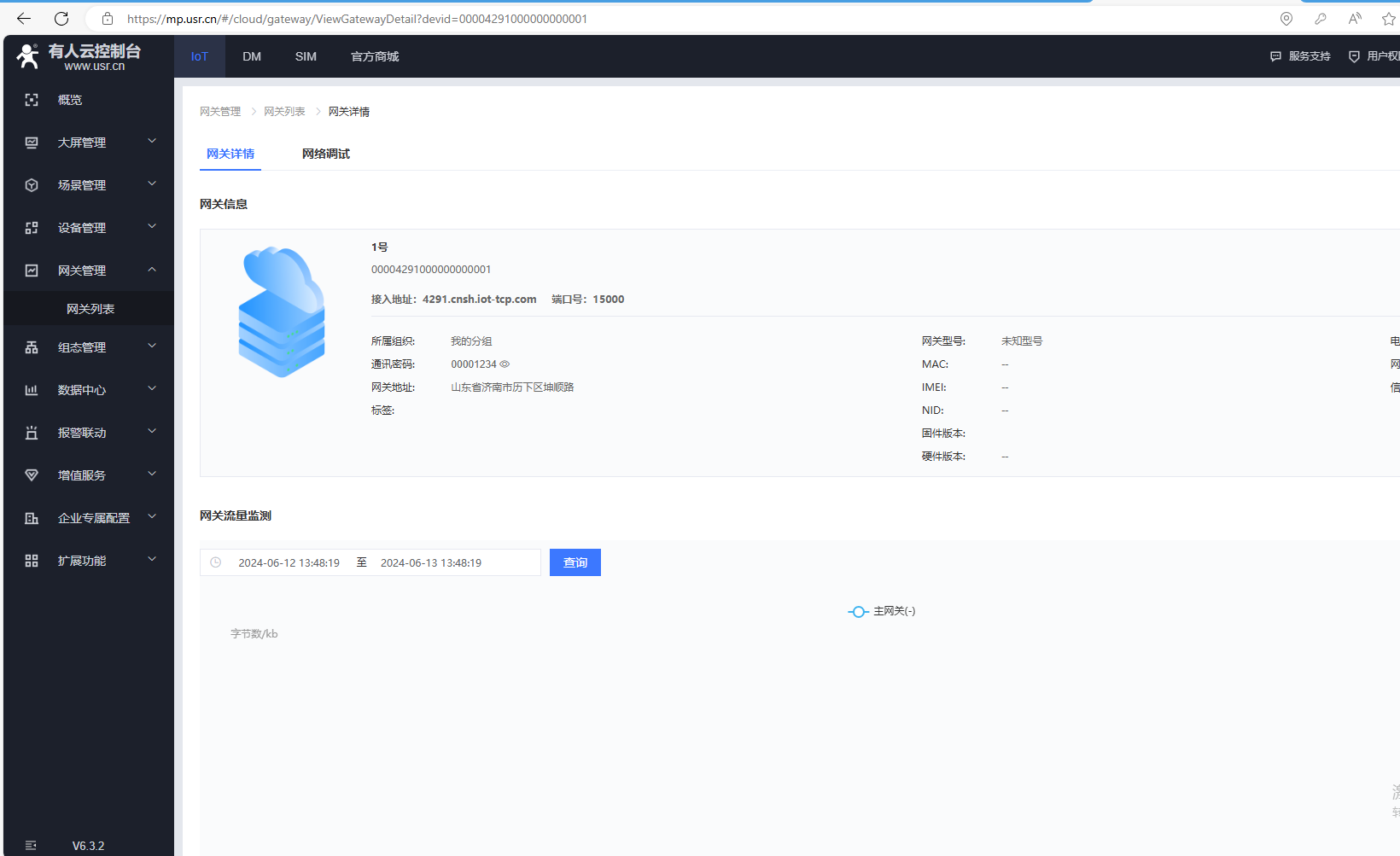 云平臺接入地址為: 4291.cnsh.iot-tcp.com; 端口號: 15000;