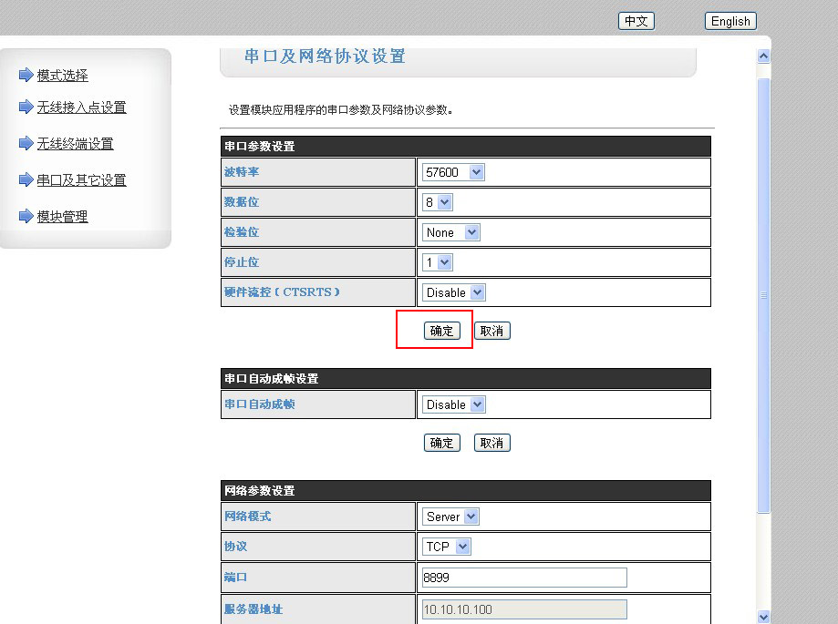 1. 串口自動成幀設(shè)置和網(wǎng)絡(luò)參數(shù)設(shè)置無特殊要求用默認(rèn)的參數(shù)即可。