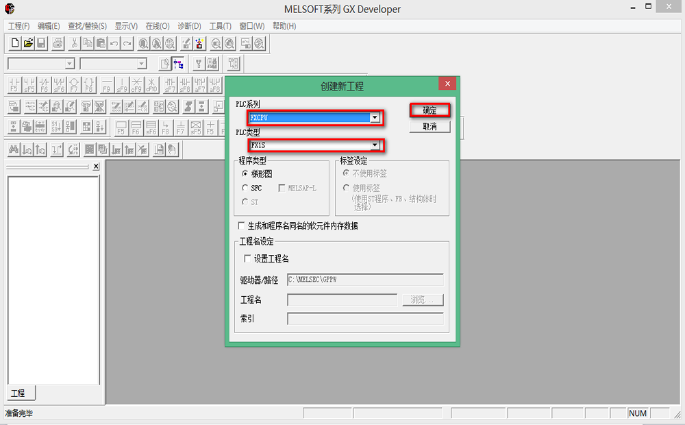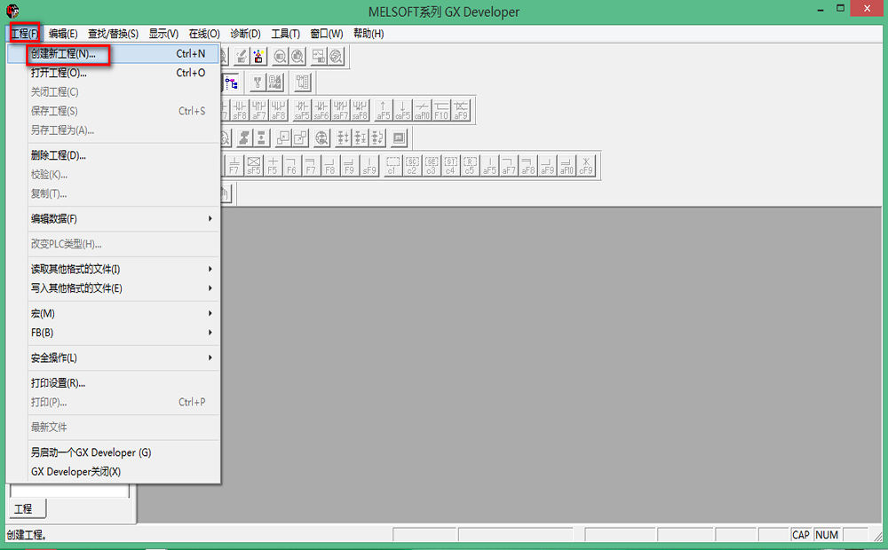 六、打開三菱上位機(jī)軟件GX,點(diǎn)擊“工程-創(chuàng)建新工程”