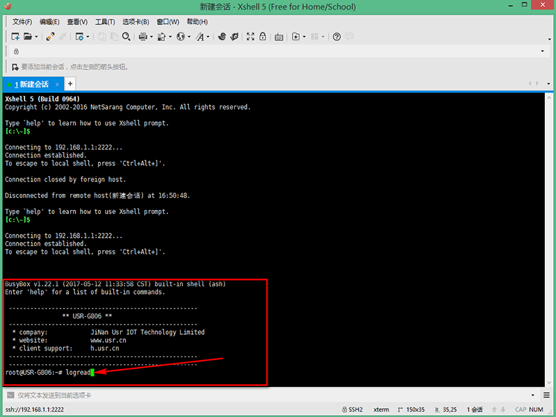 11、出現(xiàn)如下界面,在界面上輸入logread,點(diǎn)擊enter鍵,進(jìn)行讀取log日志