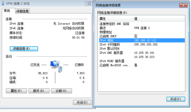 可以看到撥號以后獲取到的IP為192.168.10.111/32