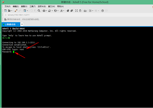 6、協(xié)議選為ssh 主機填寫192.168.1.1 端口號填寫2211,點擊“確定”,協(xié)議選為TELNET