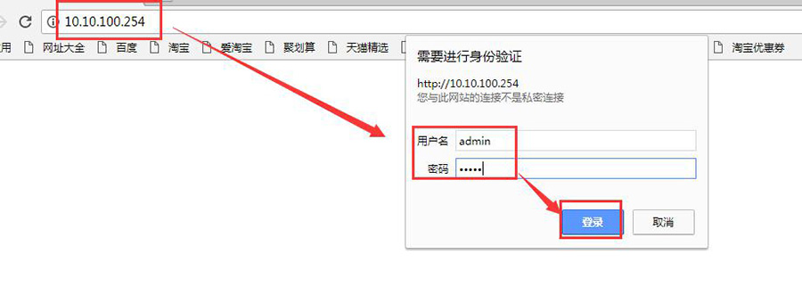 B. 用google或者IE瀏覽器打開配置網(wǎng)頁10.10.100.254,用戶名和密碼均為admin