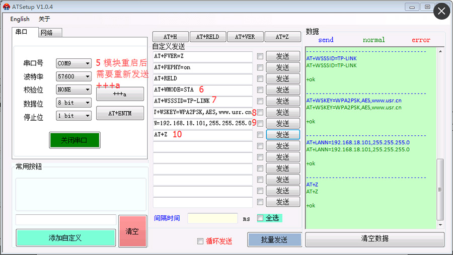 注意:AT+LANN設(shè)置的這個(gè)IP地址必須和要連接的AP在同一個(gè)網(wǎng)段,否則不能正常通訊的。