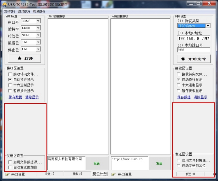 運(yùn)行軟件“USR-TCP232-Test”時(shí)打開呈現(xiàn)如下界面: