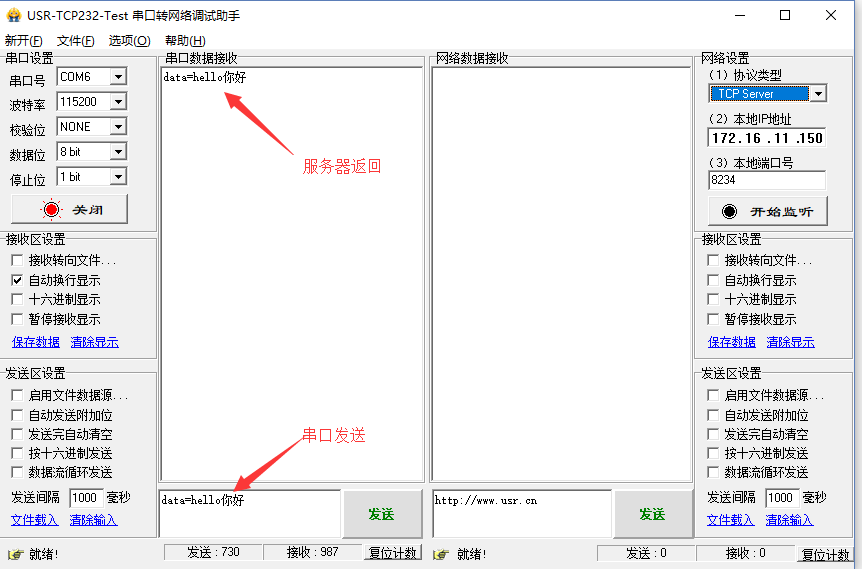 3、發(fā)送data=hello你好,返回數據:data=hello你好