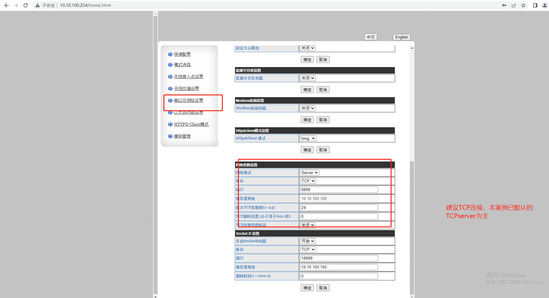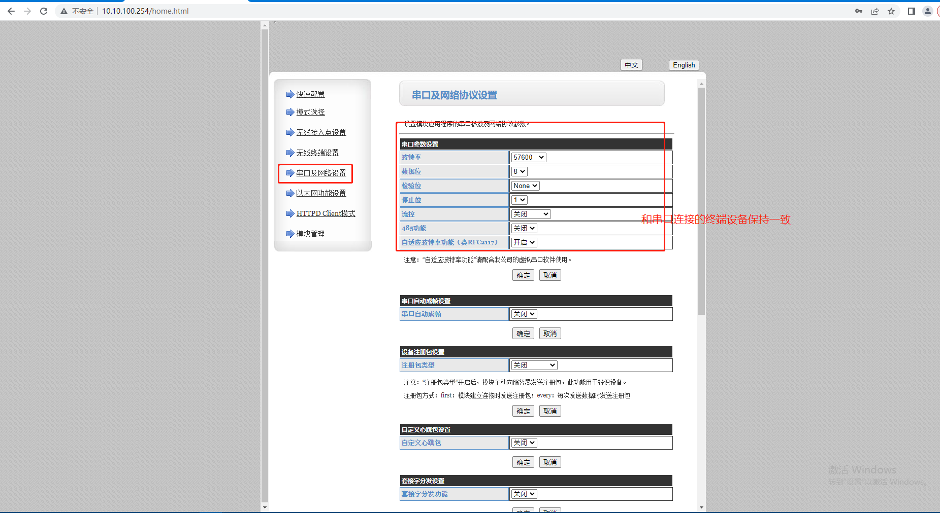 7. 串口及網(wǎng)絡(luò)設(shè)置: