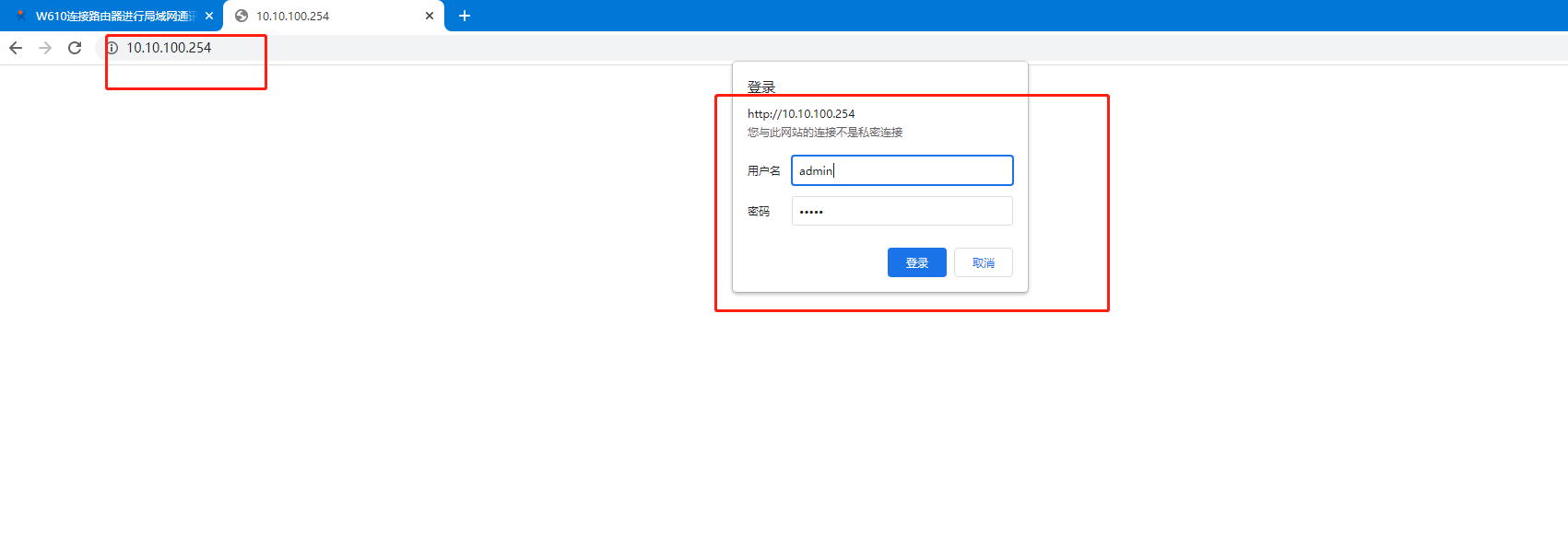 3、用瀏覽器打開W610的IP地址(出廠默認(rèn)10.10.100.254),用戶名和密碼均是admin