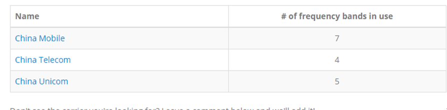 如果想要查詢中國運營商對應(yīng)的頻段