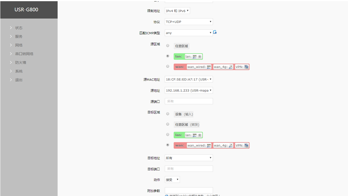 在使用路由器的應(yīng)用中,客戶會(huì)只允許指定內(nèi)網(wǎng)設(shè)備上網(wǎng),這個(gè)就需要我們防火墻策略來實(shí)現(xiàn)。