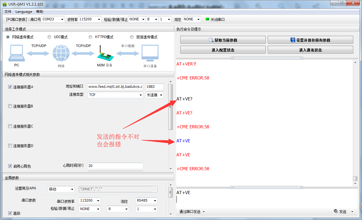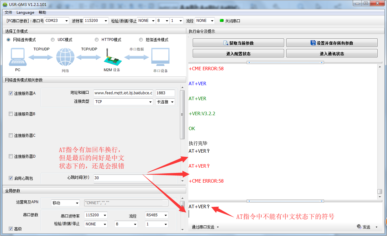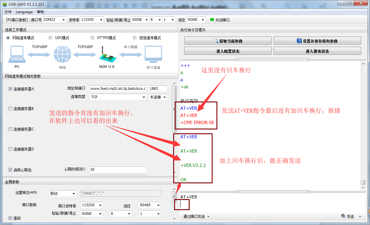 1. AT指令格式不正確,發(fā)送AT指令時,需要在AT指令最后加上回車換行