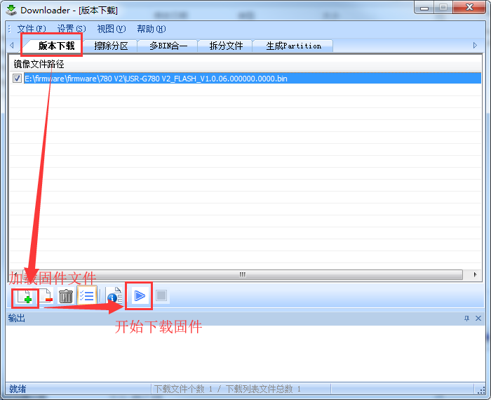 加載固件文件(如果先前有文件,先將先前的文件刪除),然后開(kāi)始下載固件