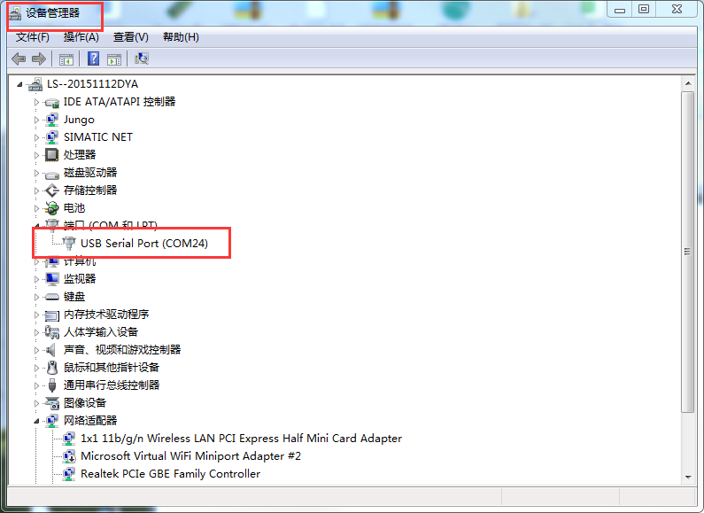 其中串口號可以在電腦的“設(shè)備管理器”中查看,見下圖;