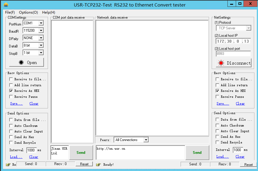 到現(xiàn)在整個(gè)案例都用用USB轉(zhuǎn)232模擬的串口設(shè)備測(cè)試的,如果通過USB轉(zhuǎn)232可以正常收發(fā)的話,那將USB轉(zhuǎn)232/485串口線斷開,接上真正的串口設(shè)備,肯定也是能夠正常通訊的