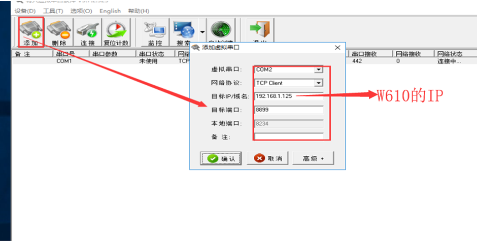 4.設置W610為TCP Server 協(xié)議,端口號默認8899(可根據自己需求設置) 點擊確定