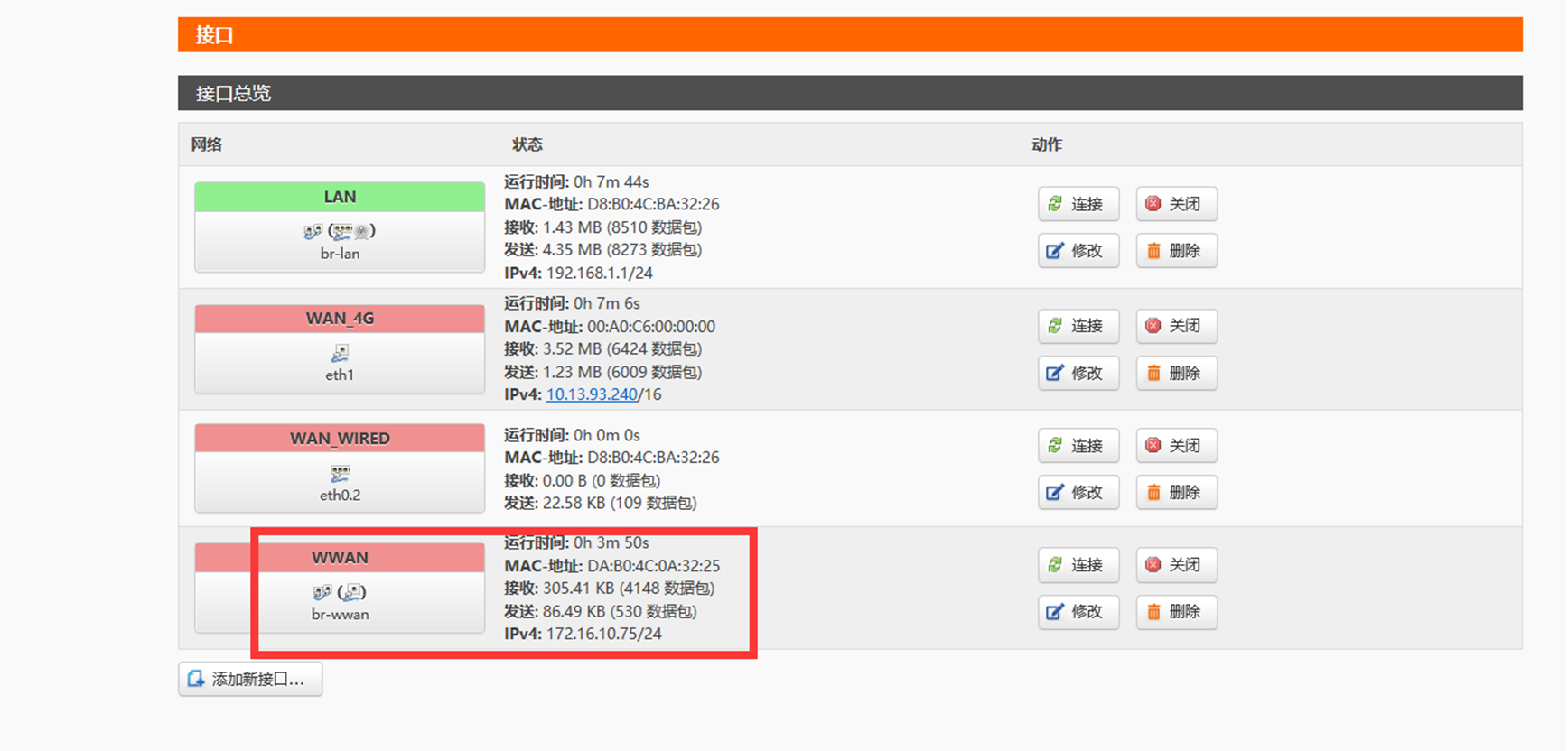 6、 在狀態(tài)總覽中便可看到,目前IPV4 WAN狀態(tài)是WWAN接口。