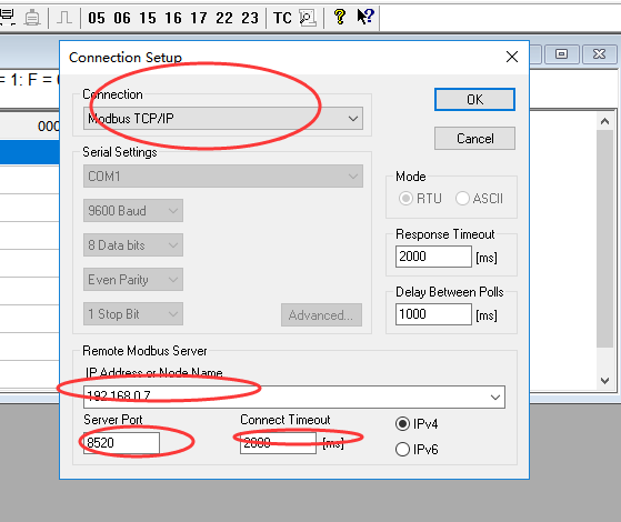 4. 打開4個Modbus Poll,參數(shù)設(shè)置均為如圖所示: