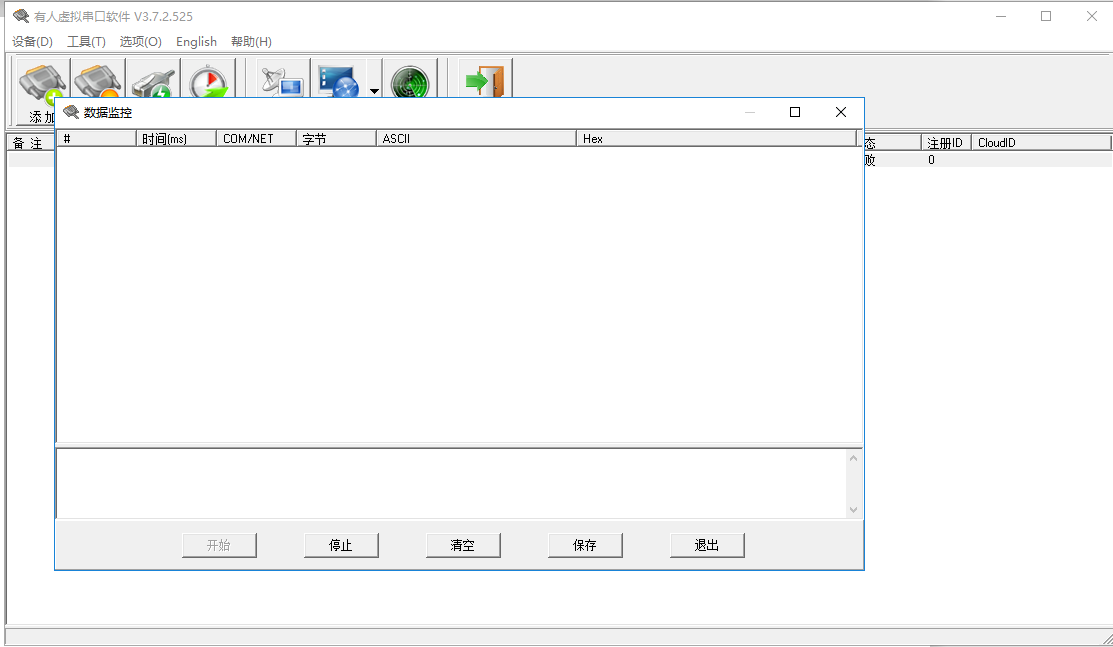 5. 監(jiān)控按鈕:這個(gè)是對相應(yīng)的虛擬串口的數(shù)據(jù)進(jìn)行監(jiān)控,監(jiān)控?cái)?shù)據(jù)的收發(fā)和內(nèi)容。