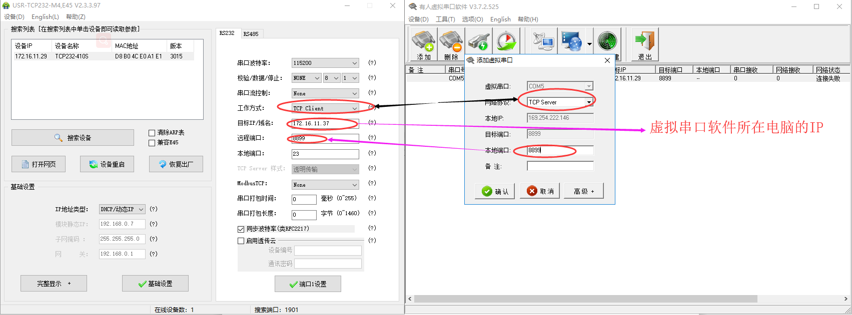虛擬串口軟件和設(shè)備之間的工作方式,一端作client一端作sever。